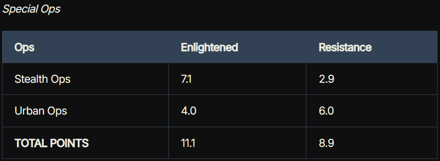 Qtde de agentes: 94 ENL X 115 RES (RES: +5% Agentes em campo)